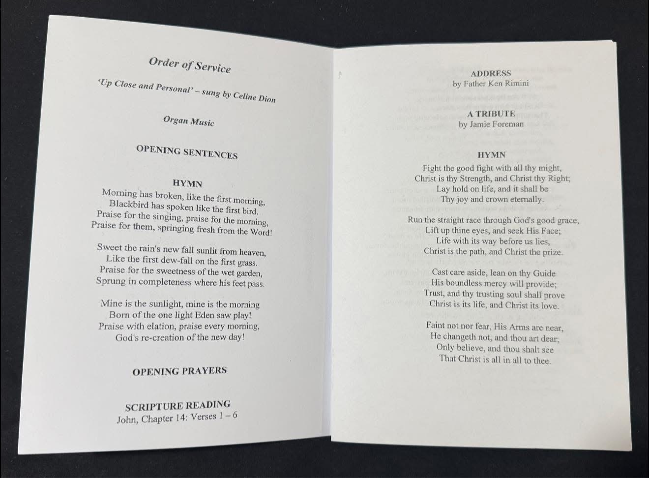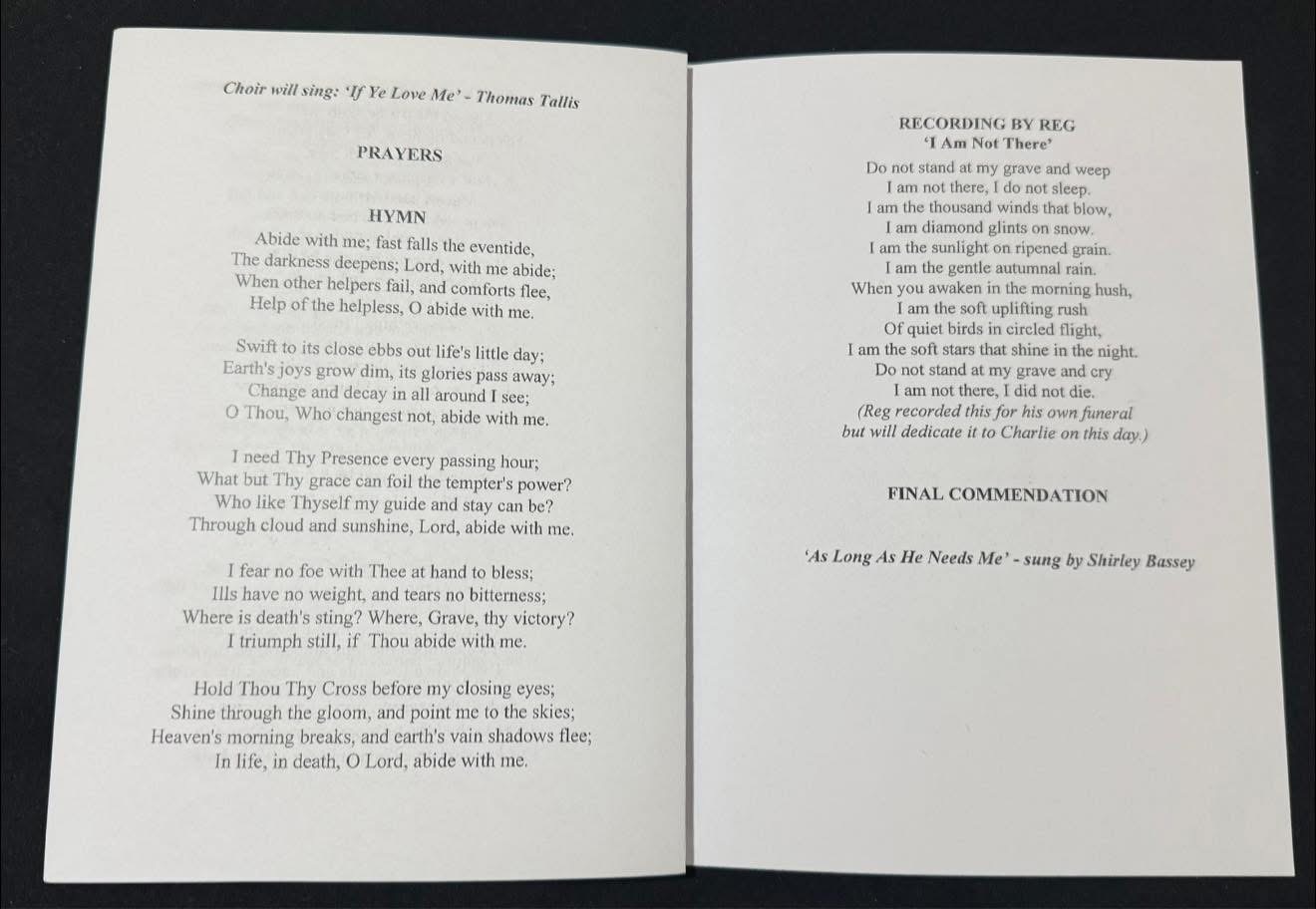 Item: Replica Funeral Order of Service