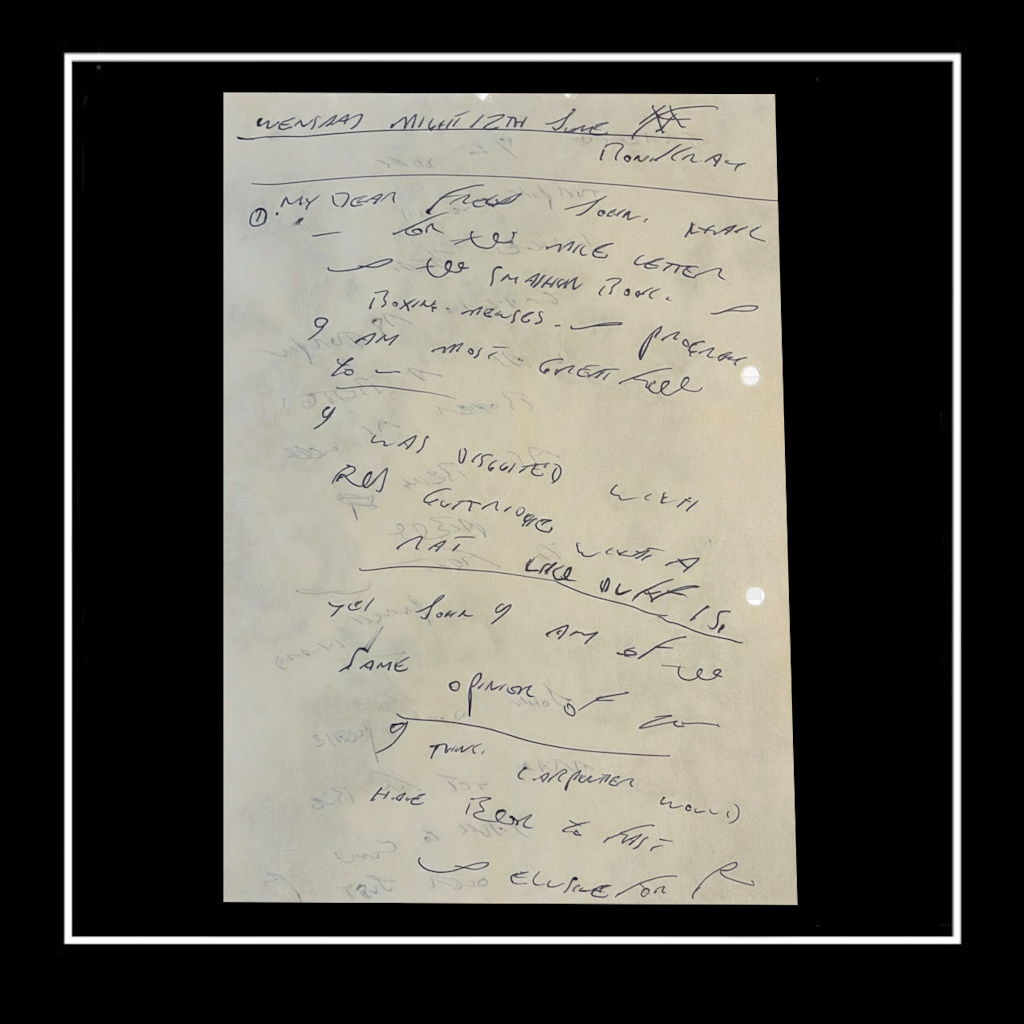 Offered here is a genuine double-sided page taken from an original handwritten letter by Ronnie Kray, co-leader of the notorious Kray Twins. This authentic piece provides a rare and intimate insight into Ronnie Kray’s personal correspondence, making it a standout addition to any serious crime history or gangster memorabilia collection.