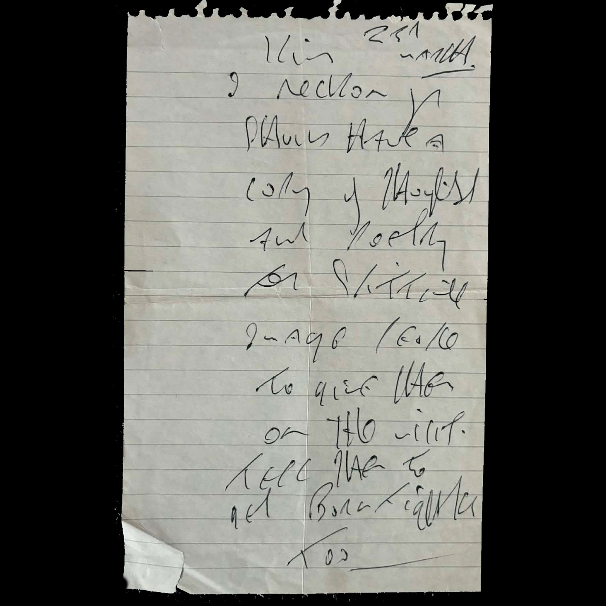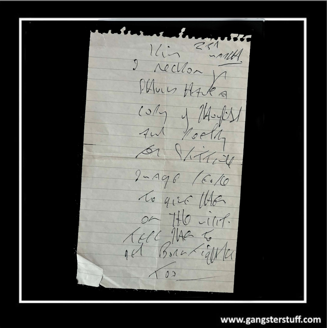 / REG KRAY HANDWRITTEN NOTE – MARCH 1991
