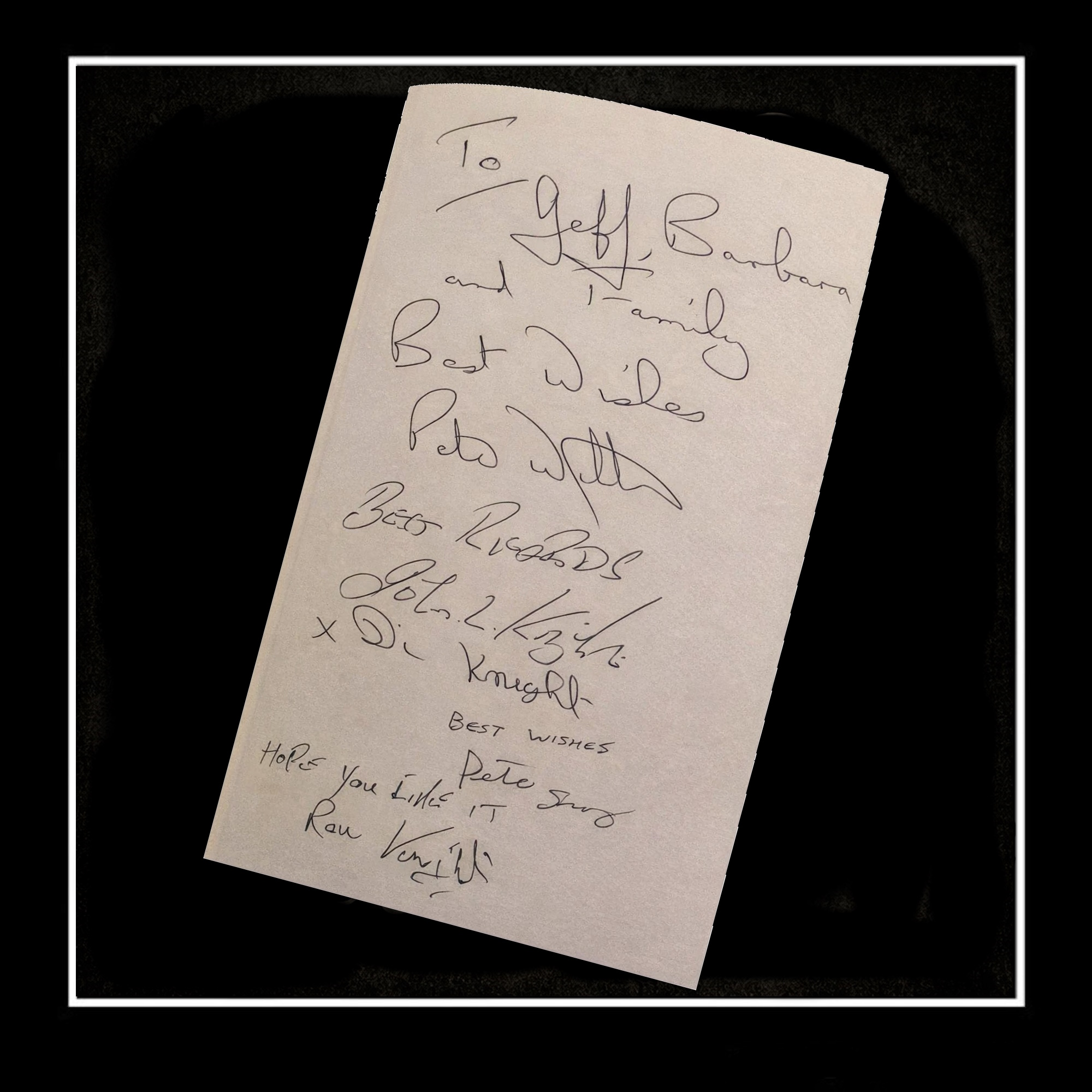 Signed by Ronnie Knight, John Knight, Di Knight, Det Supt Peter Wilton & Pete Sawyer