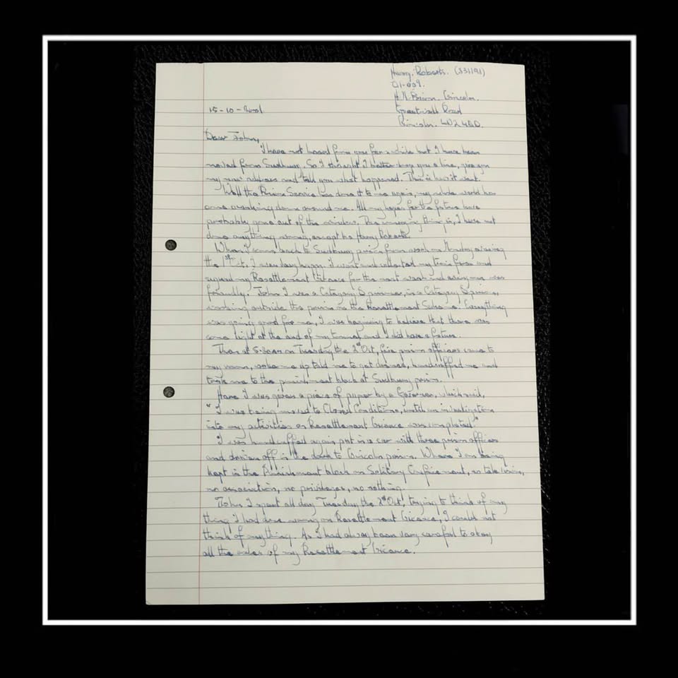 Own a rare and historically significant piece of true-crime history — a single-sided handwritten letter penned by Harry Roberts, one of Britain’s most notorious criminals. Harry Roberts became a household name following the infamous 1966 Shepherd’s Bush murders, in which three unarmed Metropolitan Police officers were gunned down in cold blood. Roberts spent nearly half a century behind bars, becoming one of the longest-serving prisoners in the UK before his eventual release in 2014. Every detail in this letter captures the tone and mindset of a man whose name has become part of British criminal folklore .A genuine piece of history — preserved with care and authenticity. Serious collectors will appreciate the rarity of any handwritten item from Roberts, whose personal correspondence seldom reaches the public market.