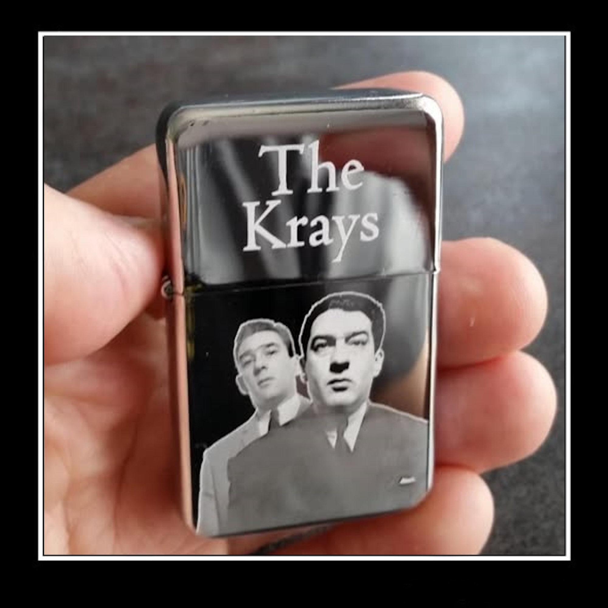 Add a bold, vintage-inspired accessory to your collection with this premium metal flip-top lighter featuring a striking engraved-style front panel. The design showcases the printed text “The Krays” along with a iconic monochrome illustration of Ron & Reg Kray, giving the lighter a gritty, retro gangster-themed aesthetic that stands out instantly.